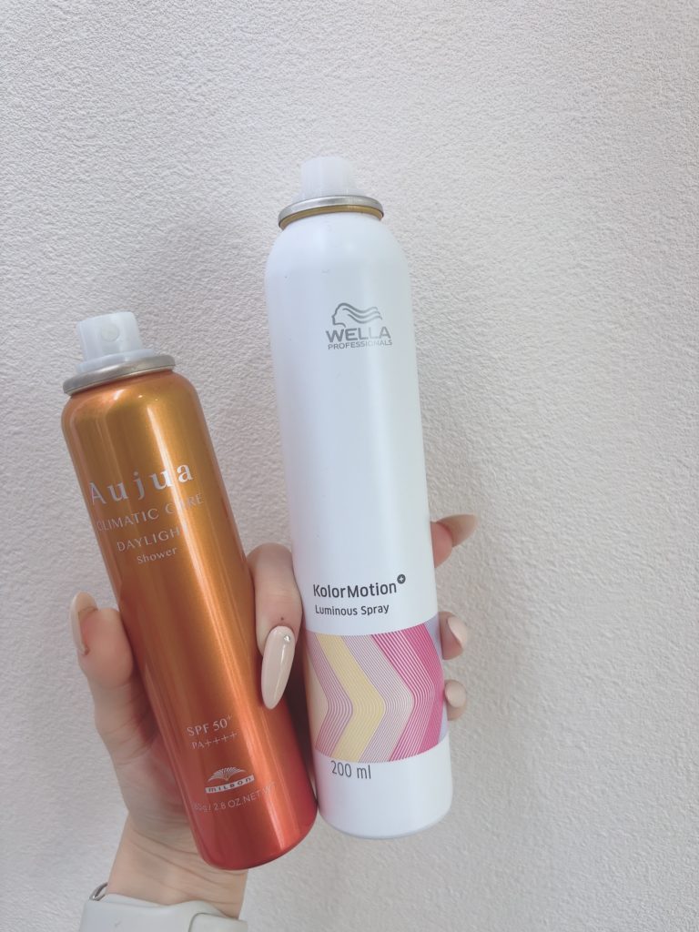 そこでこれからの時期オススメなのが、オージュアのデイライトシャワーとウエラのルミナススプレーです!